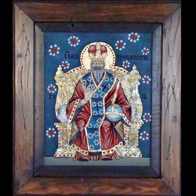 • Icoana este pictata pe sticla, executata in tehnica tempera cu emulsie de ou si ulei, avand la baza un model traditional romanesc.
